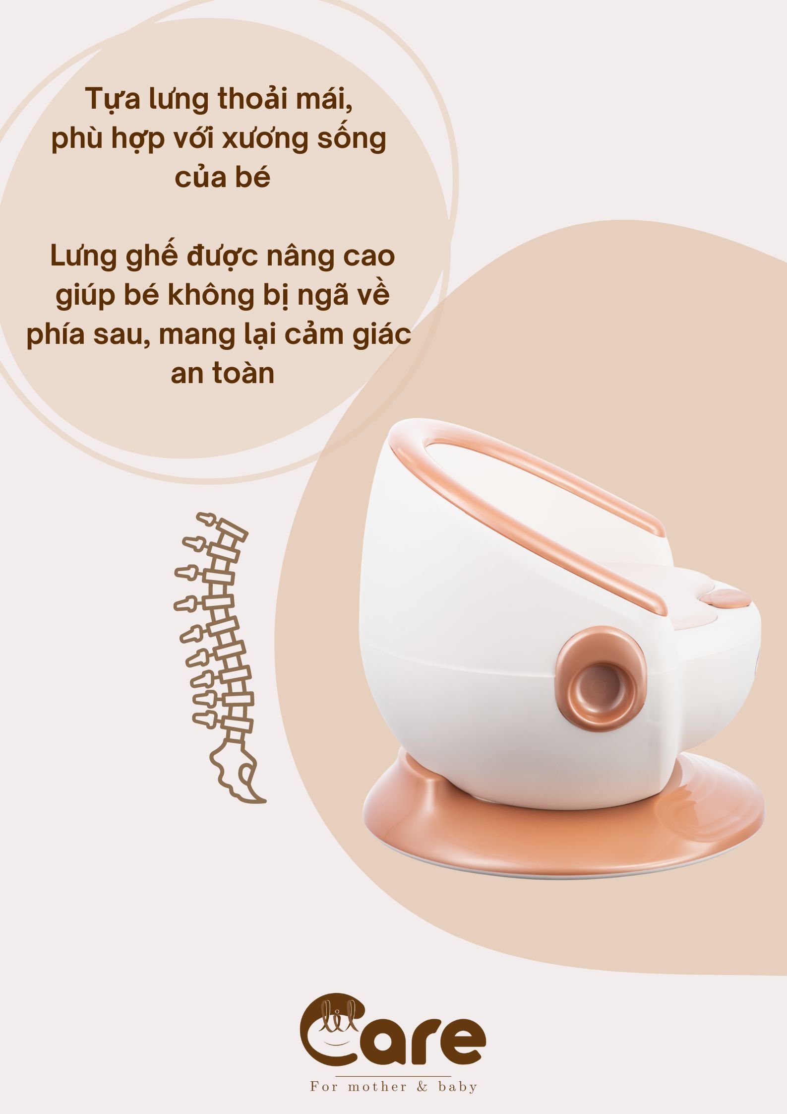 -Thiết kế lưng ghế cong nhẹ, phù hợp với xương sống của bé.