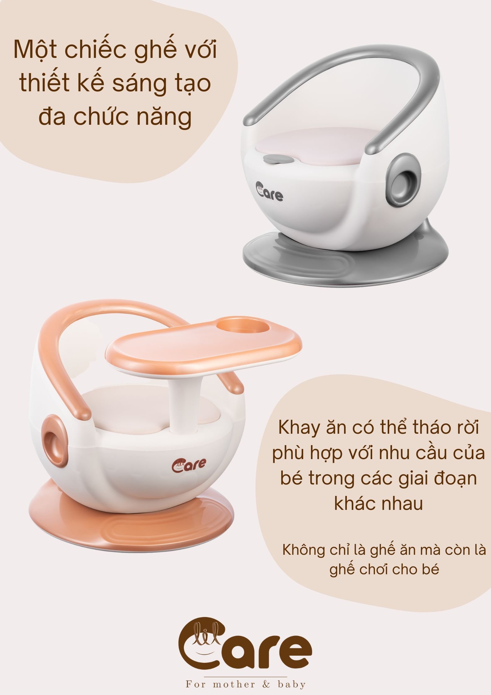 Ghế ăn đa năng Lil Care 1 sản phẩm nổi bật với thiết kế sáng tạo, hiện đại, vừa là ghế ăn, vừa là ghế ngồi chơi cho các bé, và vừa là 1 sản phẩm decor, đặt ở bất kì vị trí nào trong nhà cũng nổi bật và hút mắt. Đảm bảo mẹ nào cũng phải thốt lên khi nhìn thấy chiếc ghế ăn dễ thương này của LIL CARE
