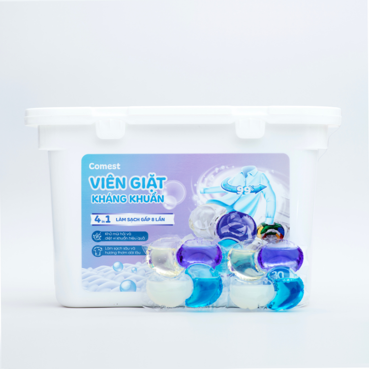 - Comest là sản phẩm tiên phong trong công nghệ kết hợp hài hòa 2 sức mạnh Giặt & Xả trong 1 viên giặt xả tiện lợi, với quy trình sử dụng đơn giản, nhanh gọn chỉ trong 1 bước, 1 giây mà không cần phải đong đo lượng sản phẩm, mang lại hiệu quả tối đa chỉ trong 1 bước.