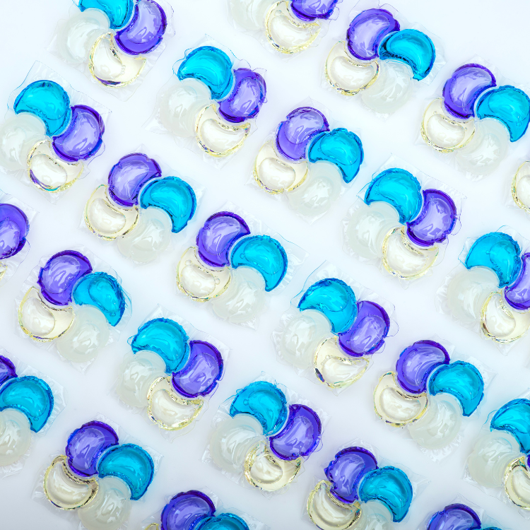 Sodium Dodecyl Benzene Sulfonate, Fatty Alcohol Polyoxyethylene ether, Propylene Glycol, Triethanolamine, Fragrance, Bio-Enzyme, Chelating Agent, Color Care Agent, Fabric Softener, Anti-bacterial Agent, Colorants, Water, PVA film.