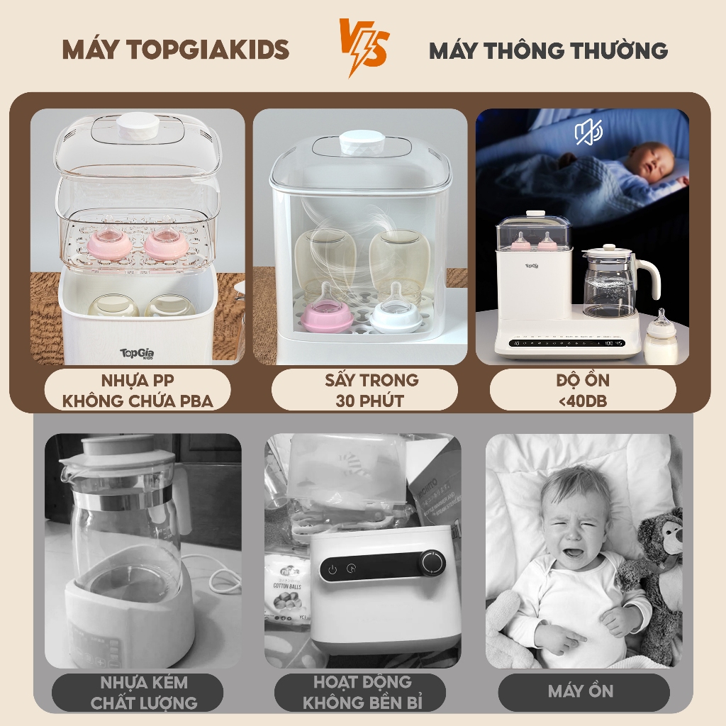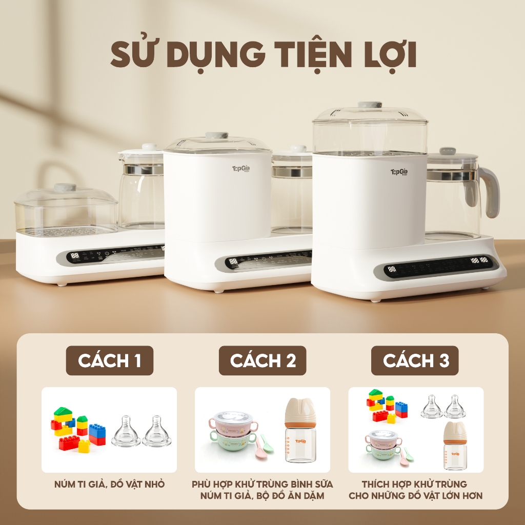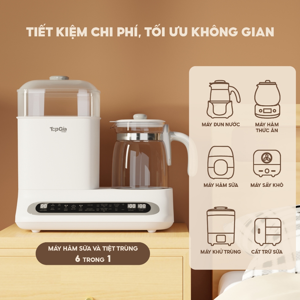 Máy hâm sữa tiệt trùng sấy khô hơi nước TopGiaKids X9P, máy đa năng 9 trong 1 thông minh tiện lợiMáy TOPGiAKIDS: