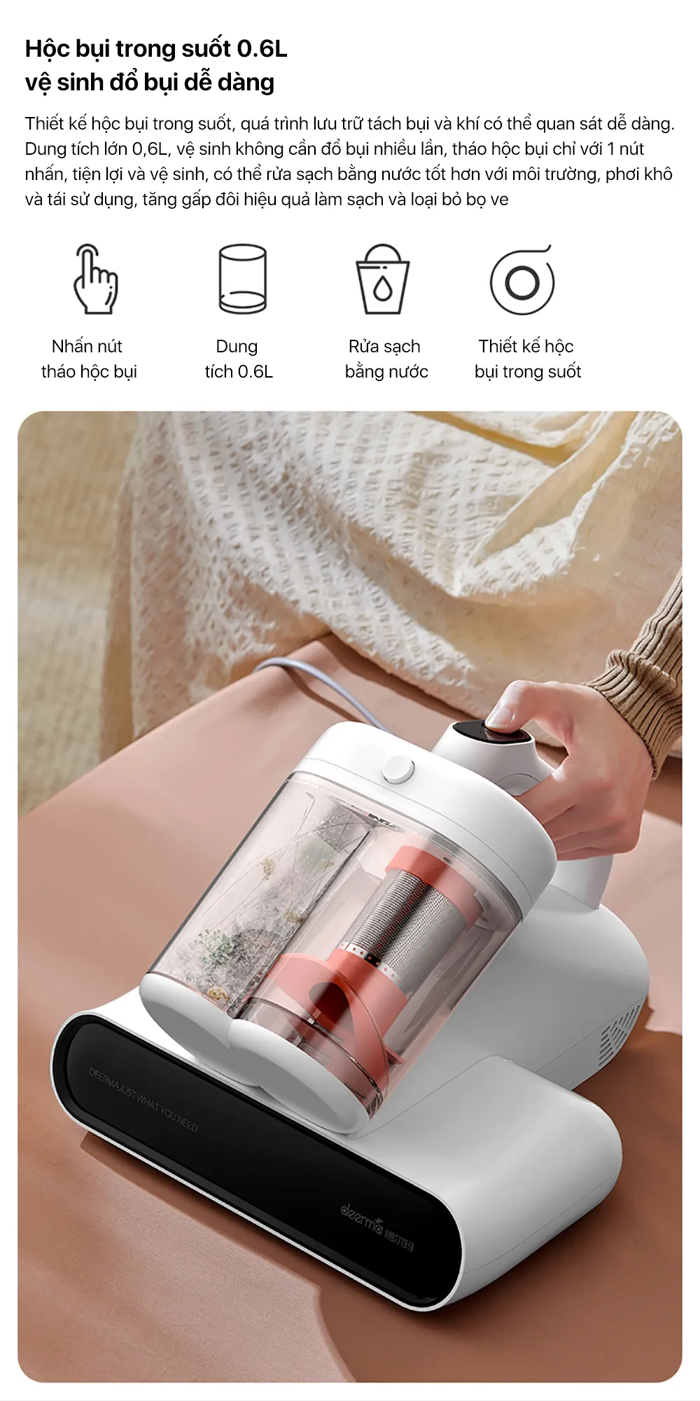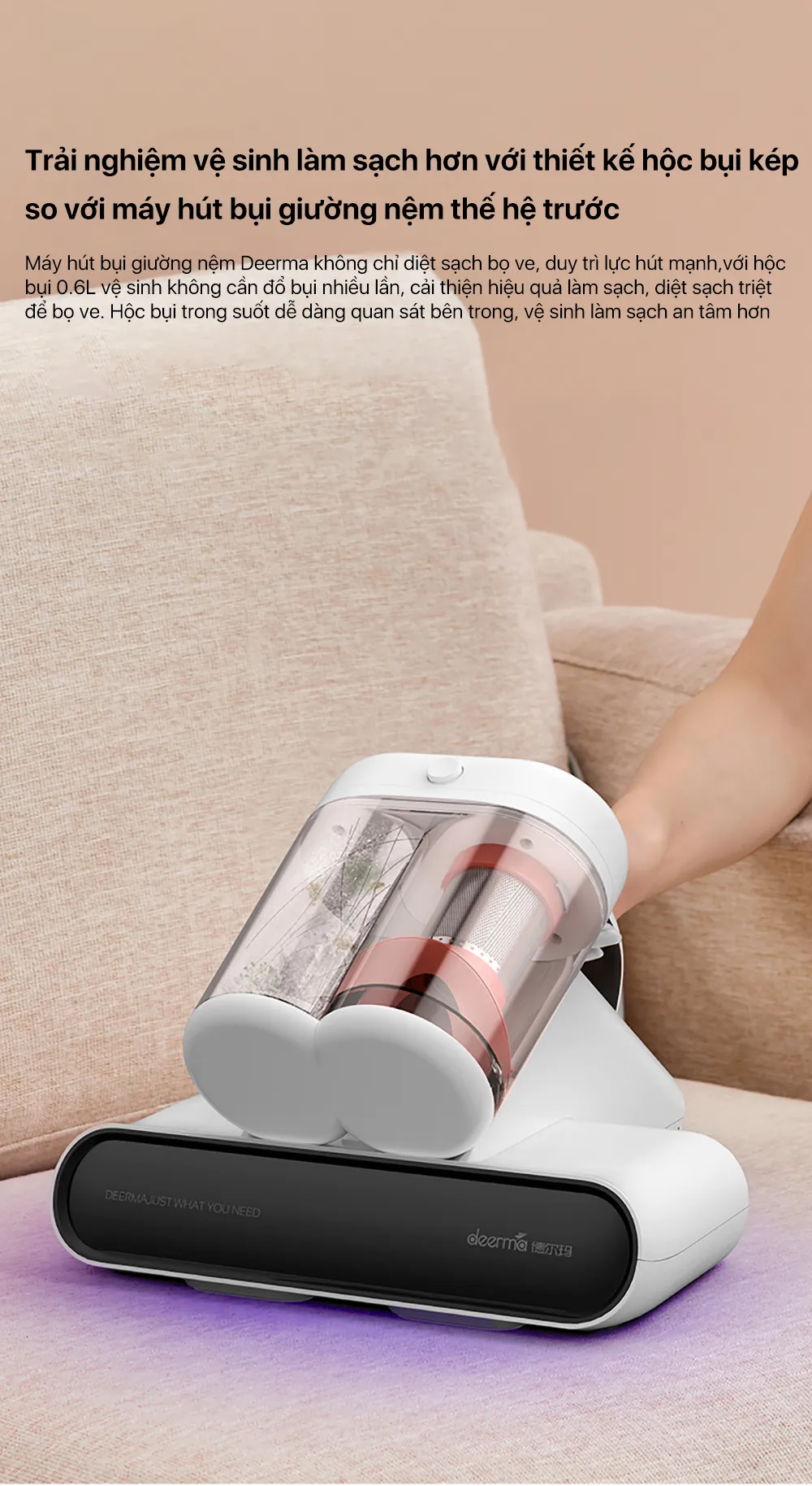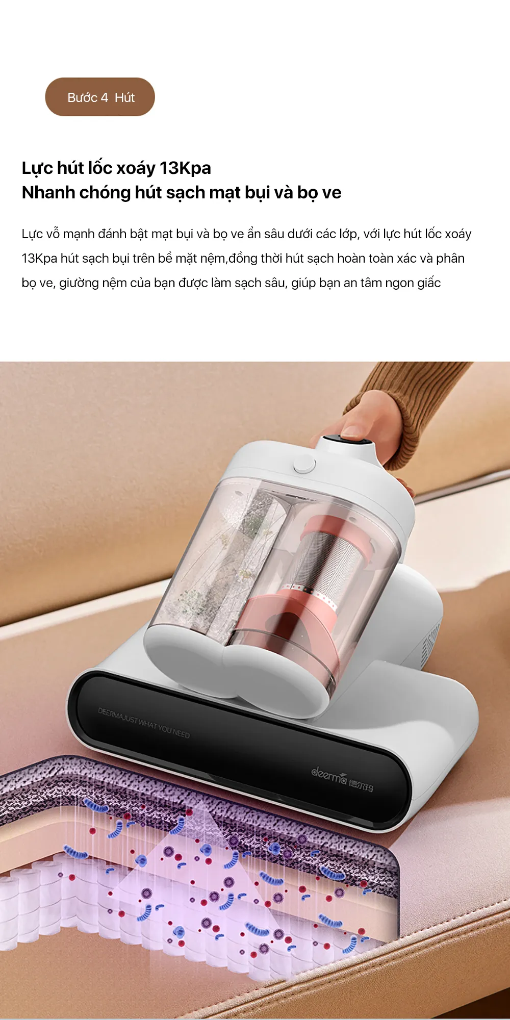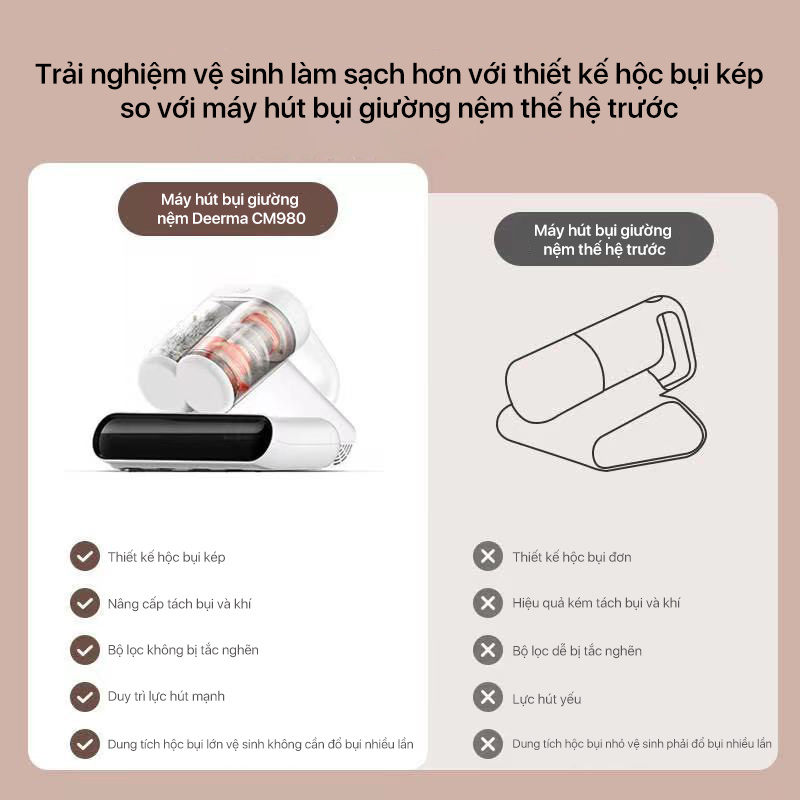 Tên sản phẩm: Máy hút bụi giường nệm hộc bụi kép Deerma