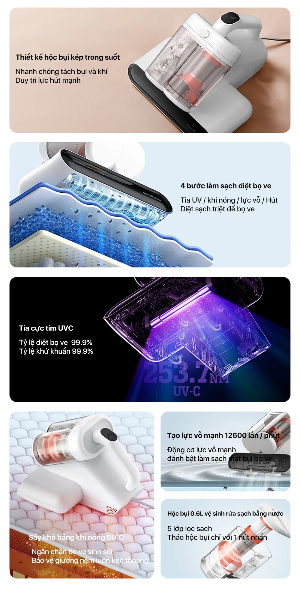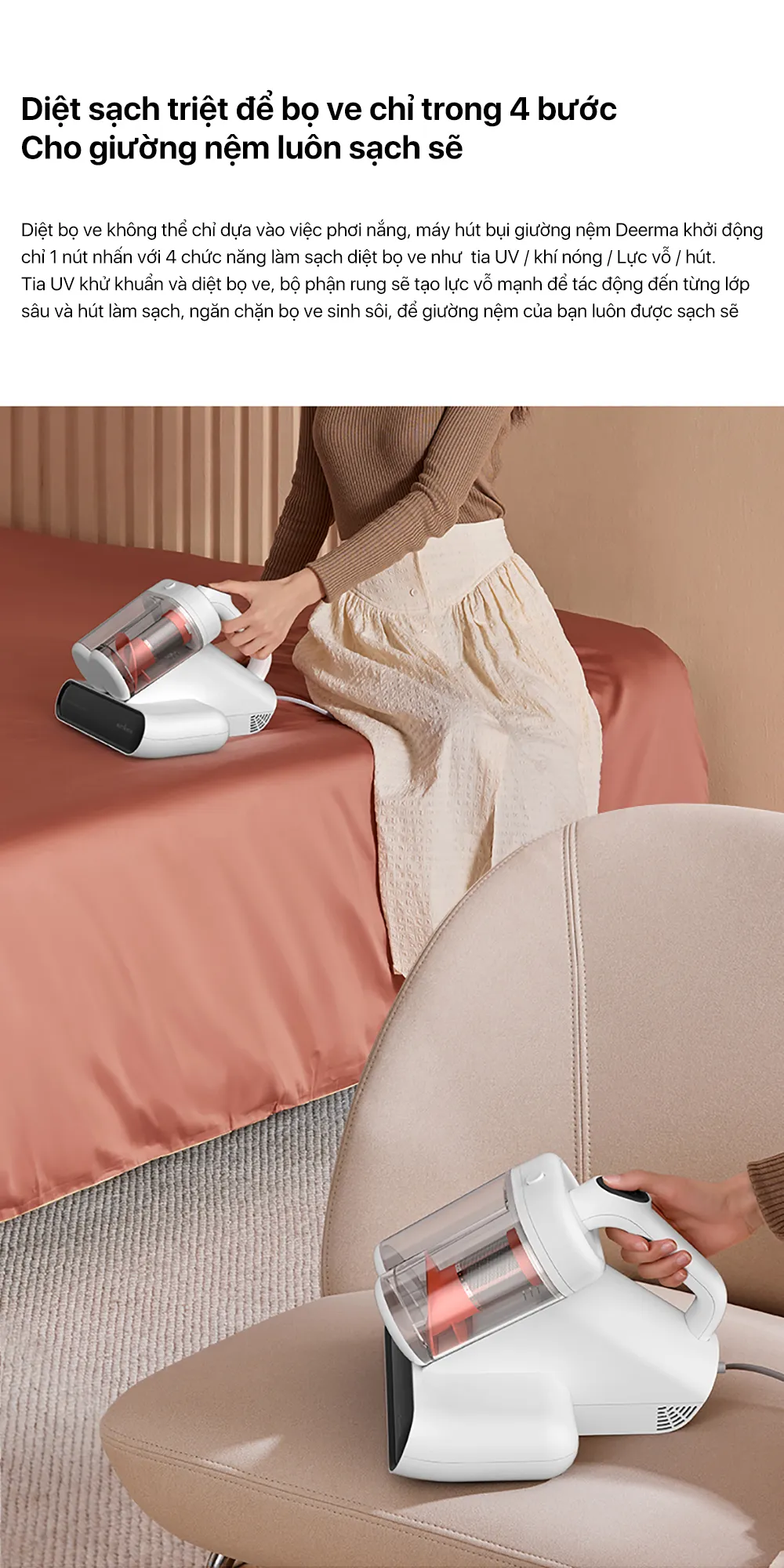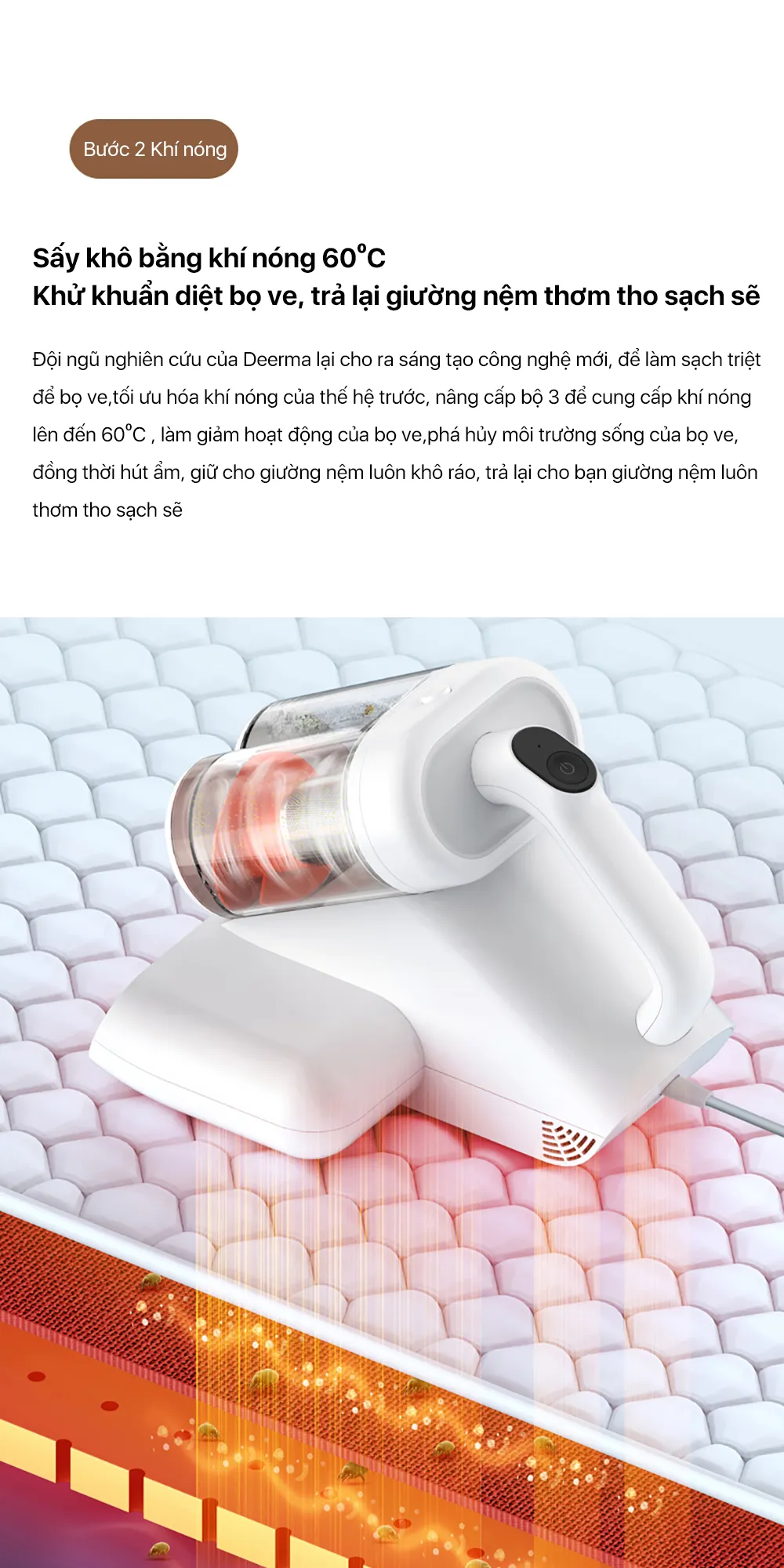 Tên sản phẩm: Máy hút bụi giường nệm hộc bụi kép Deerma