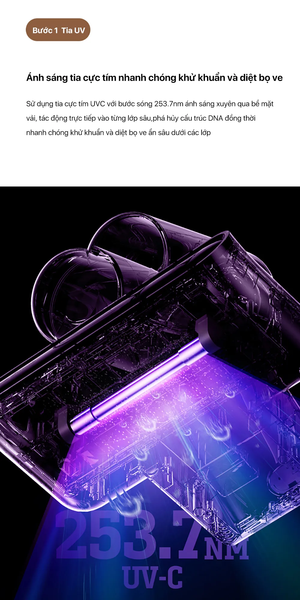 -Trang bị đèn tia cực tím, an tâm diệt sạch triệt để bọ ve