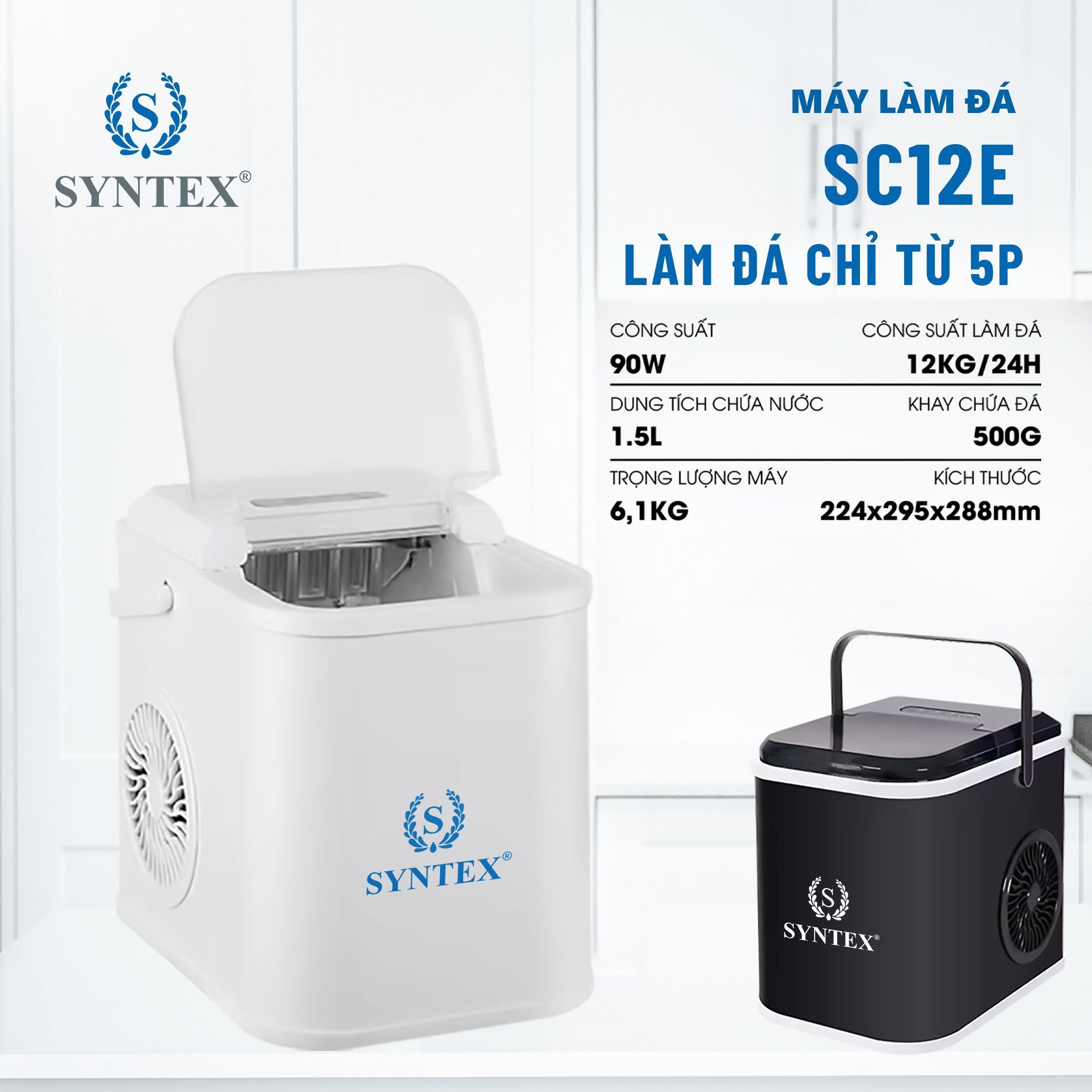Máy làm đá SYNTEX SC12E có 2 màu đen và trắng cho bạn lựa chọn