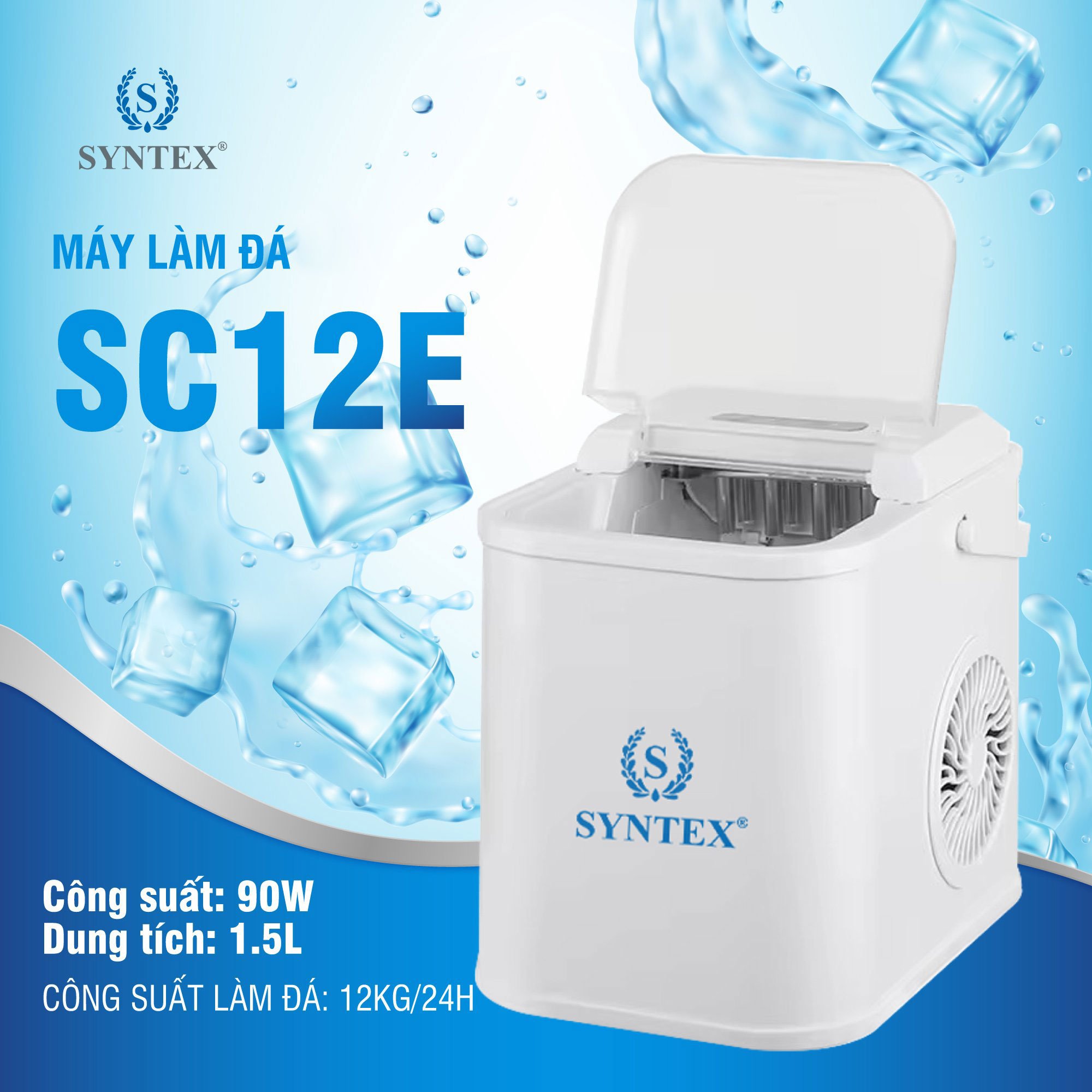 Máy làm đá SYNTEX SC12E nhỏ gọn, làm đá nhanh, bảo hành 12 tháng