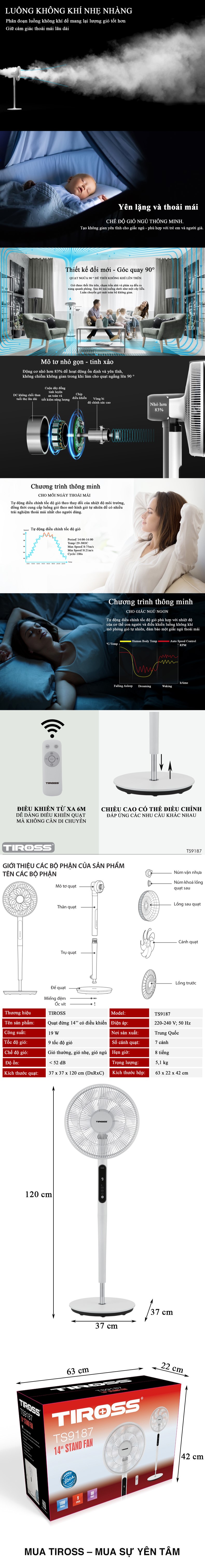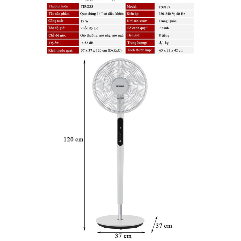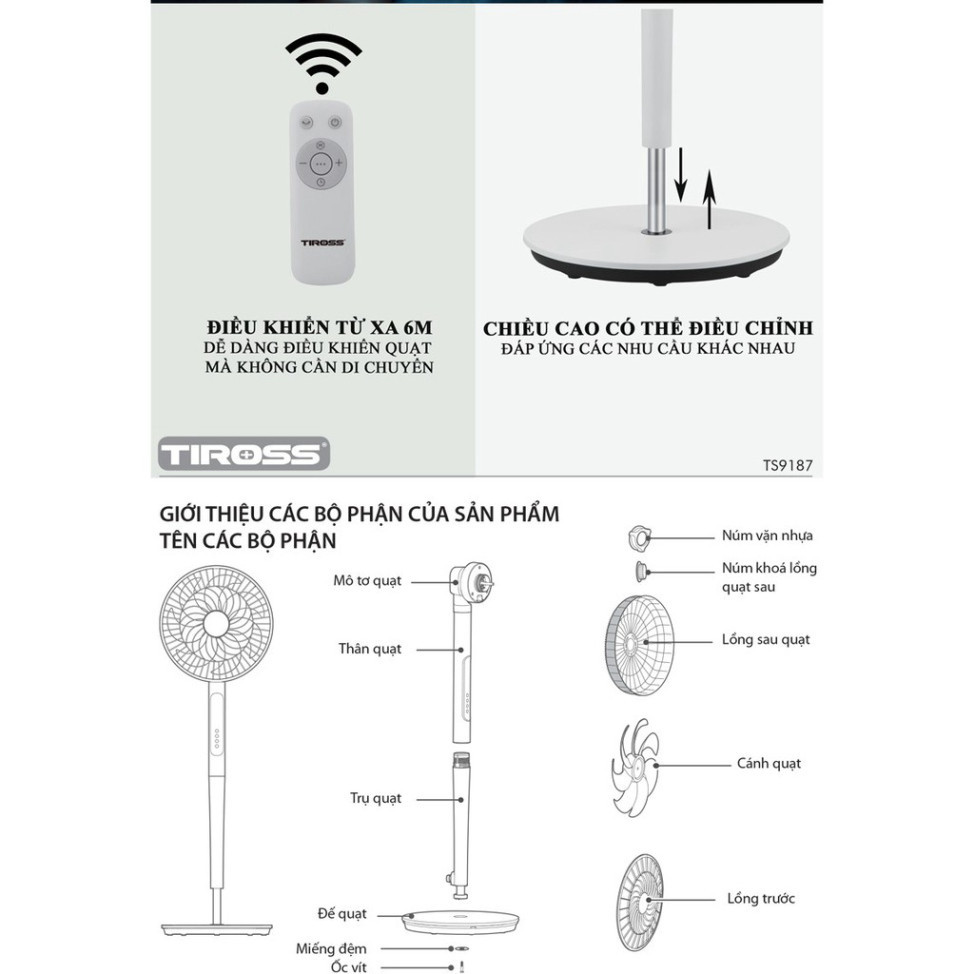 - Quạt đứng TIROSS TS9187 được thiết kế hiện đại, gọn nhẹ và dễ dàng sử dụng