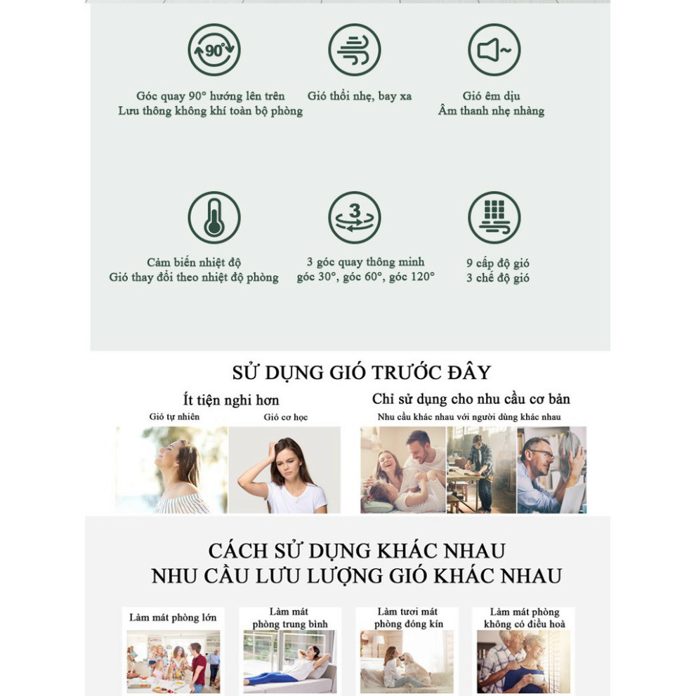 - Quạt có thể ngửa hướng lên trên 90 độ - Cảm biến nhiệt độ gió thay đổi theo nhiệt độ phòng