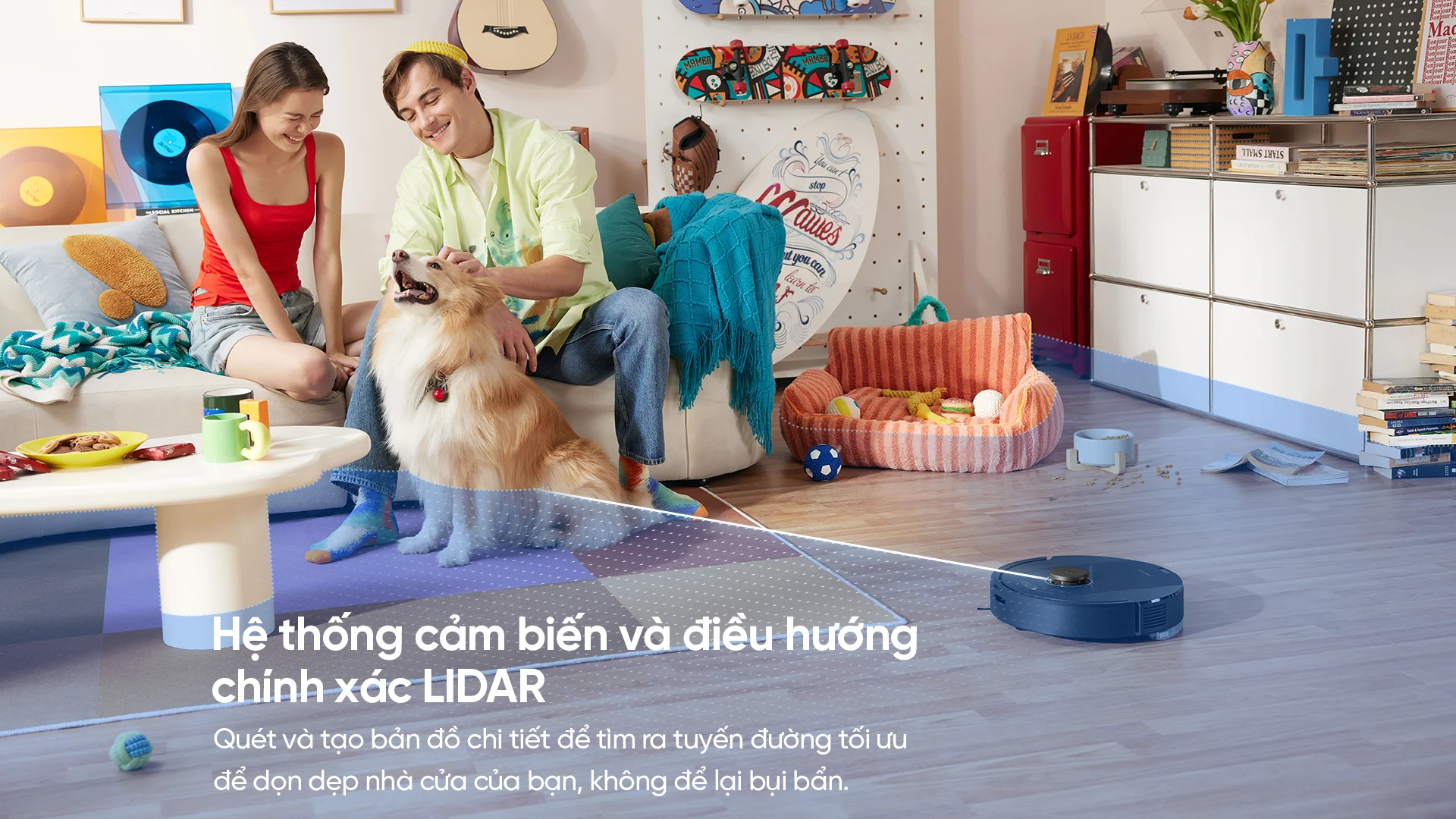 - Hệ thống cảm biến và điều hướng chính xác LiDAR: Hệ thống quét nhanh ngôi nhà của bạn và thiết lập bản đồ chi tiết cho lộ trình dọn dẹp tối ưu nhất