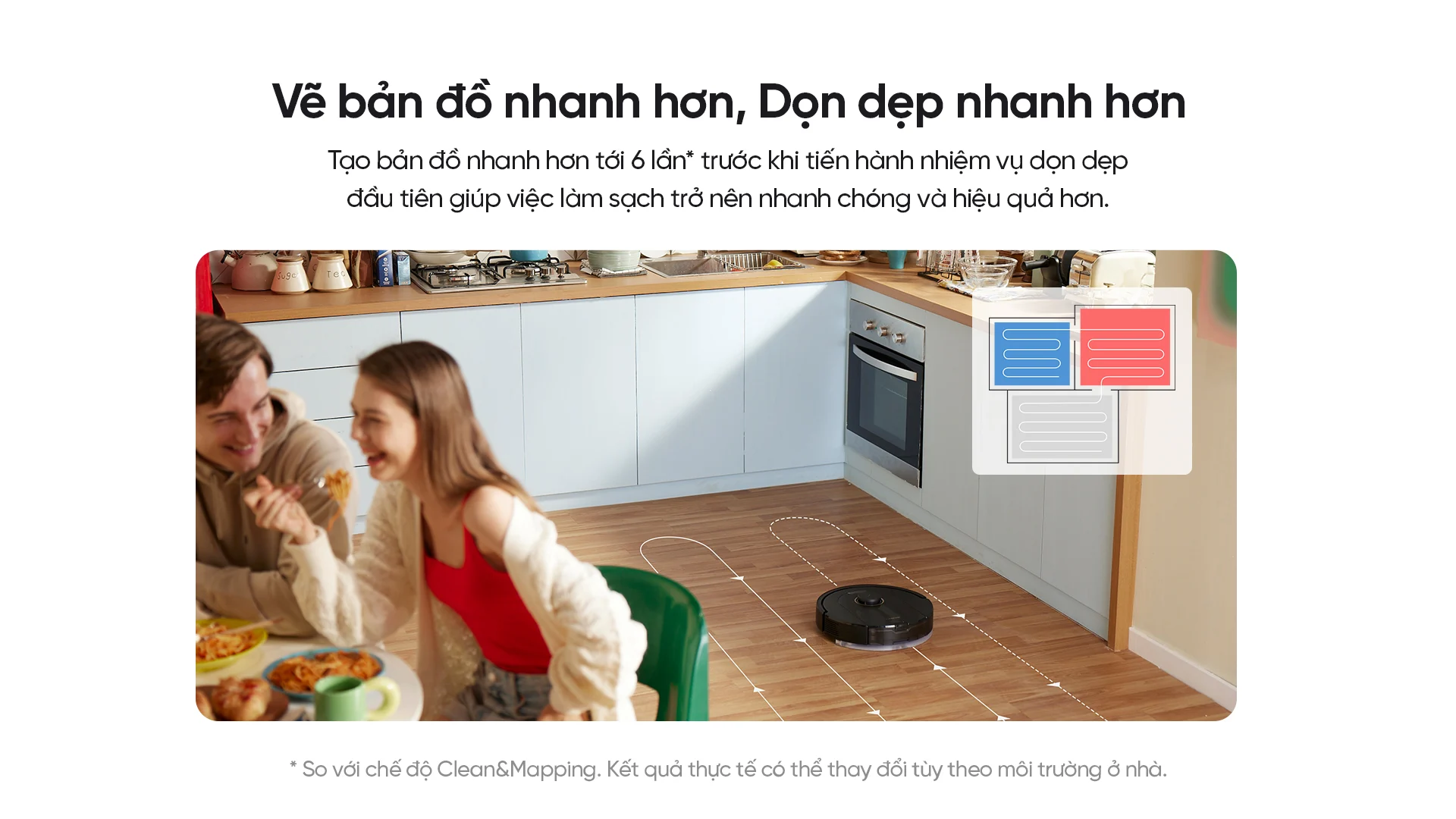 Robot có thể tạo một bản đồ nhanh gấp 6 lần trước khi tiến hành nhiệm vụ dọn dẹp đầu tiên, giúp việc dọn dẹp hàng ngày trở nên hiệu quả và nhanh chóng