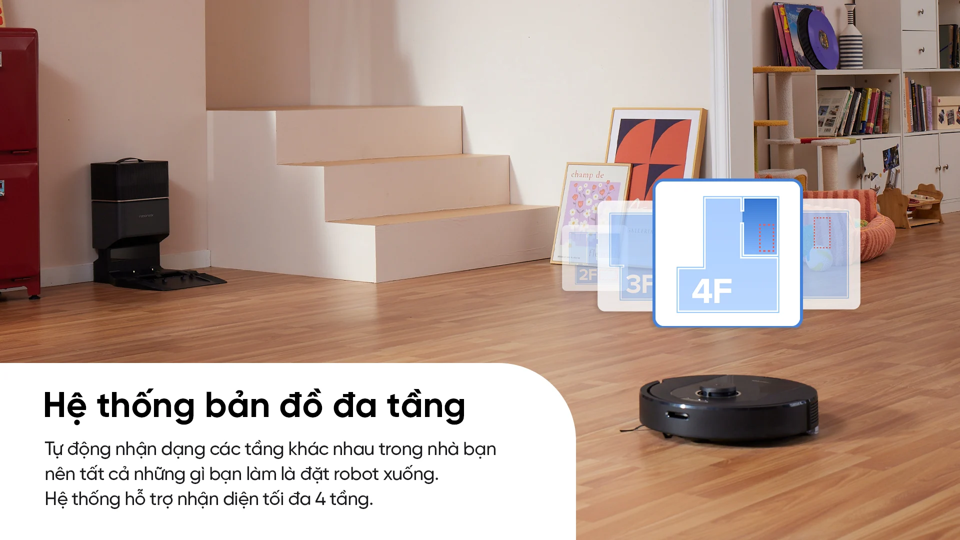 Nhà của bạn không chỉ có 1 tầng? Hệ thống bản đồ đa tầng sẽ tự động nhận dạng các tầng khác nhau trong ngôi nhà của bạn. Tất cả những gì bạn cần làm là đặt robot xuống. Hệ thống hỗ trợ nhận diện tối đa 4 tầng.
